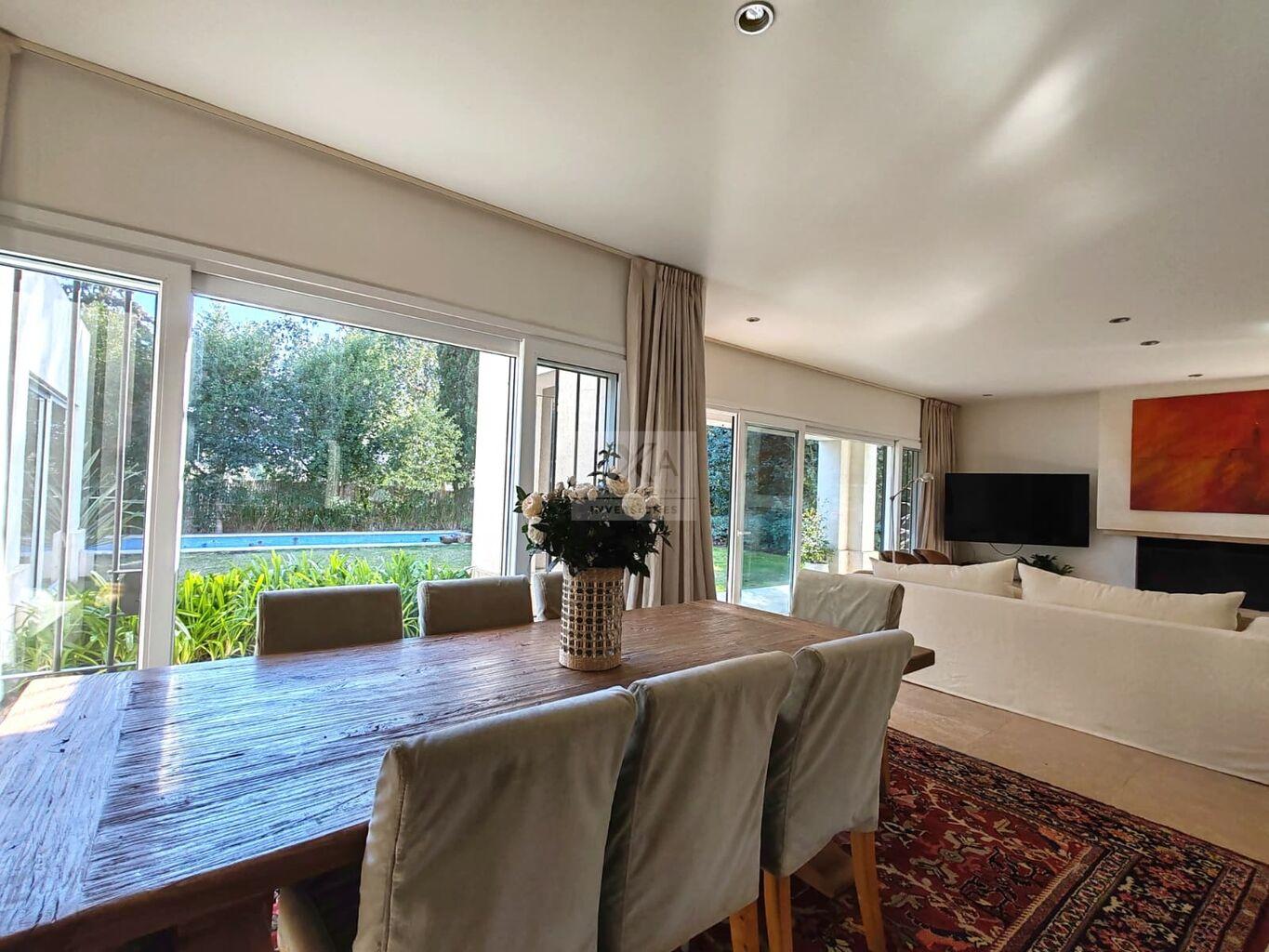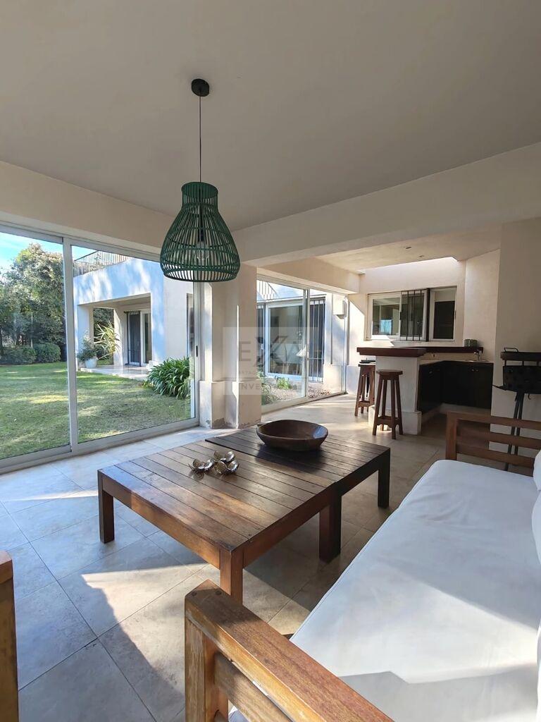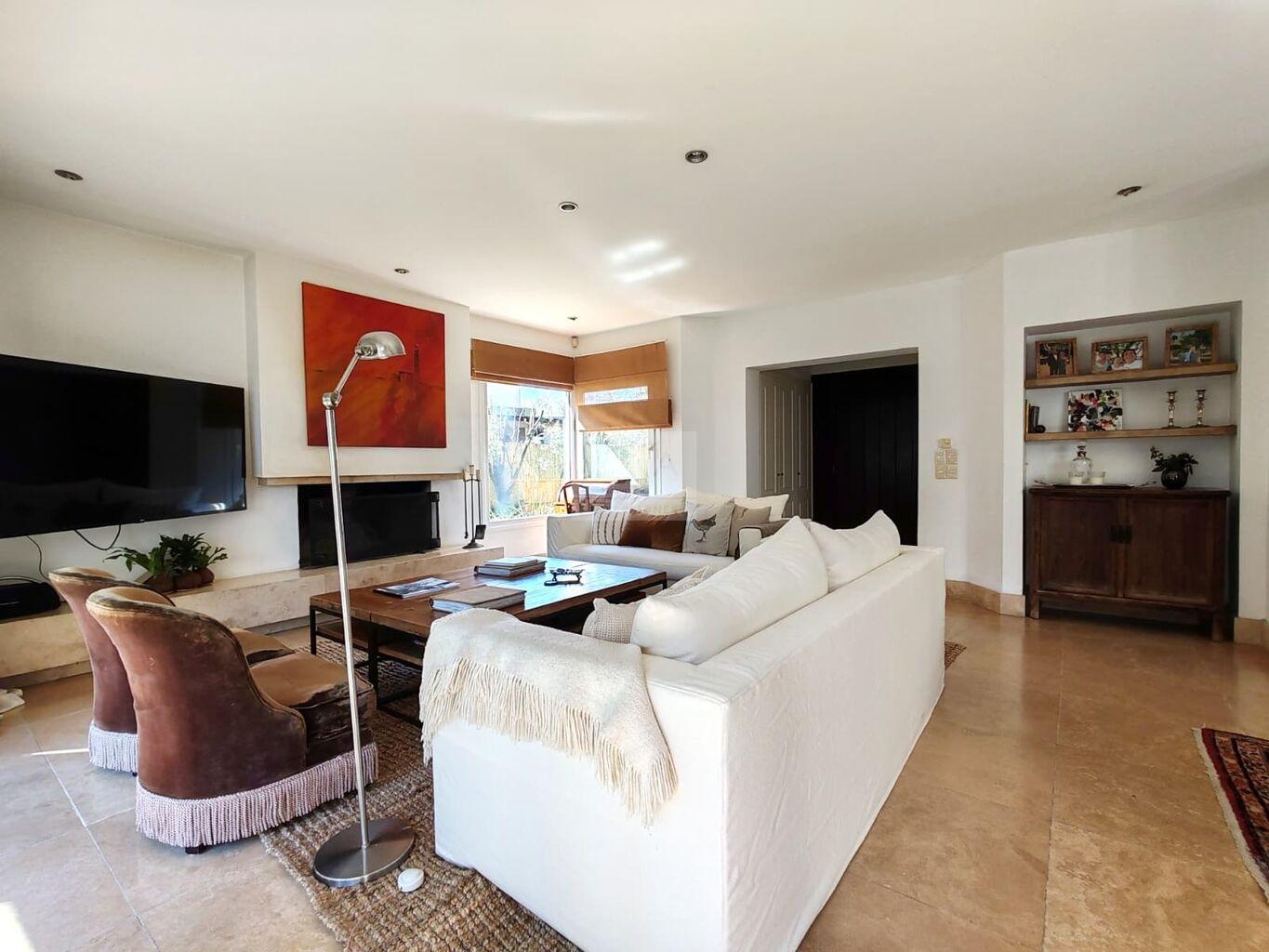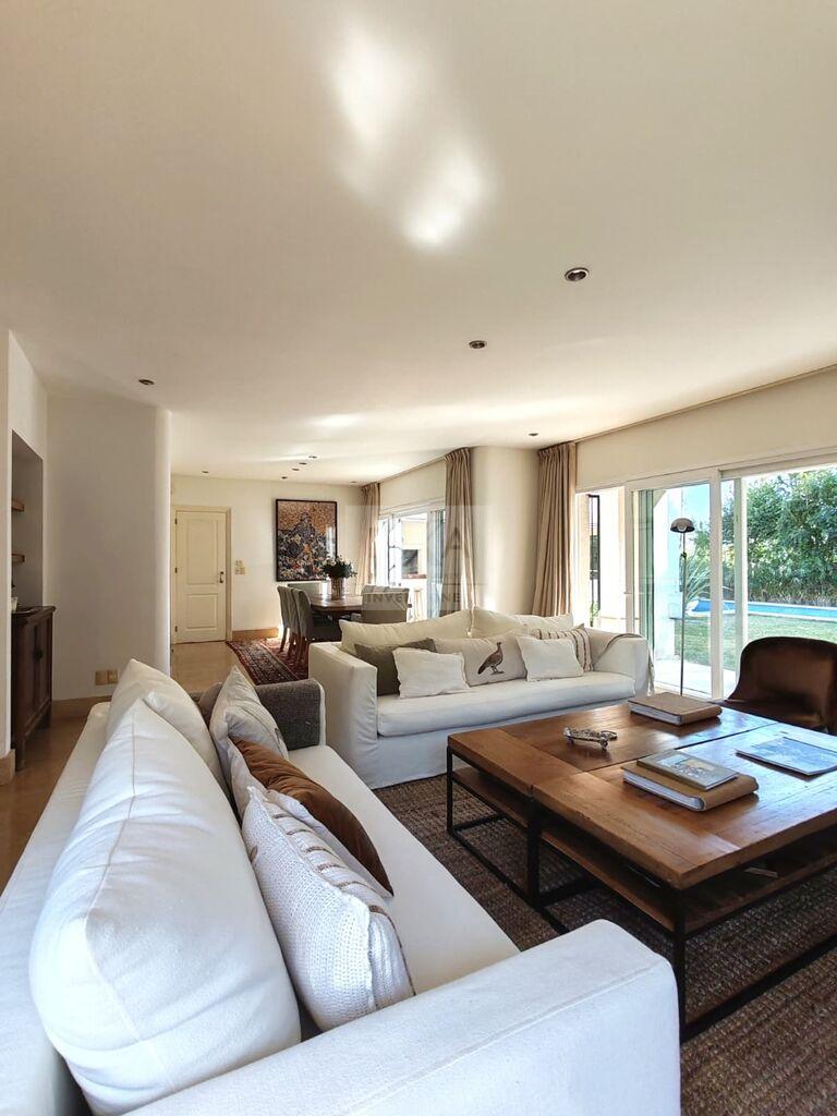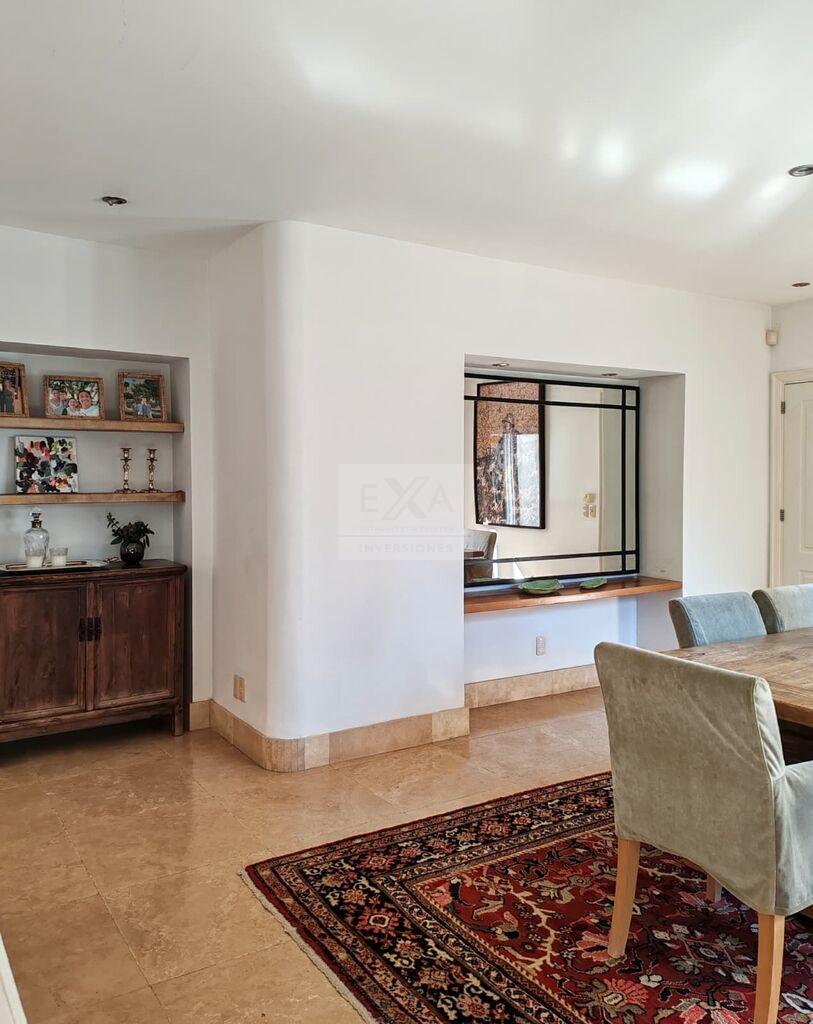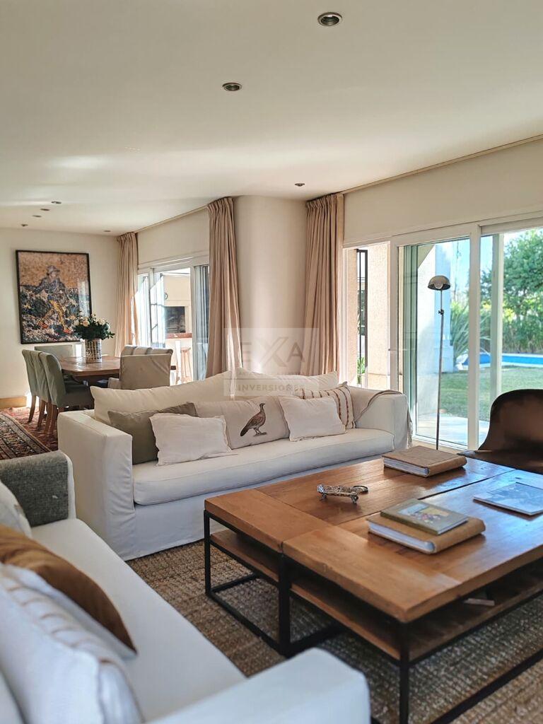 Gran living comedor con estufa de leña, muy luminoso, y con salida al fondo de la casa.